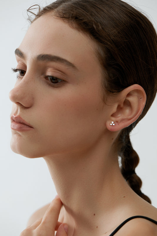 Hiamond 18k Yellow gold Princess & Round Diamond Earrings